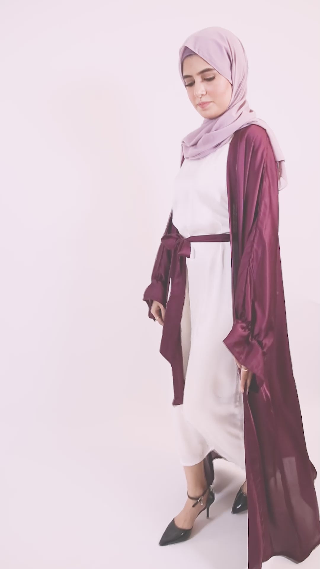 With this Satin Open Abaya Set, you'll turn heads and make a lasting impression wherever you go. Don't miss out on this exquisite piece that seamlessly blends traditional elegance with modern fashion. Elevate your wardrobe today with Cranberry Red perfection.