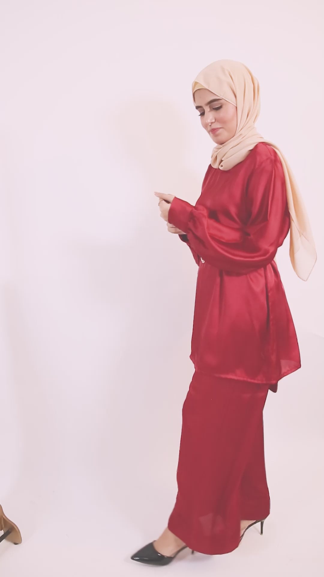Choose our Satin Co-ord Modest Two-Piece Set in burgundy red and make a captivating fashion statement that is both modest and sophisticated.