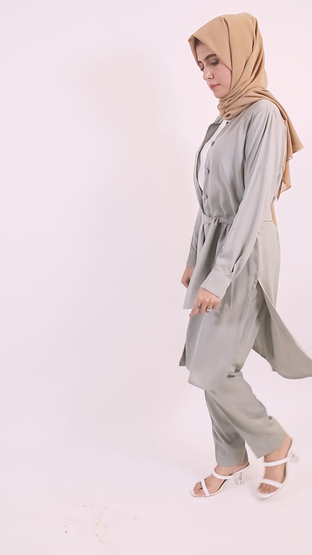 This two-piece matching set is designed for versatility, making it suitable for a range of occasions, from casual outings to more formal gatherings. The 'Mint Gray' color reflects a perfect balance between calmness and sophistication, allowing you to make an understated yet memorable statement.