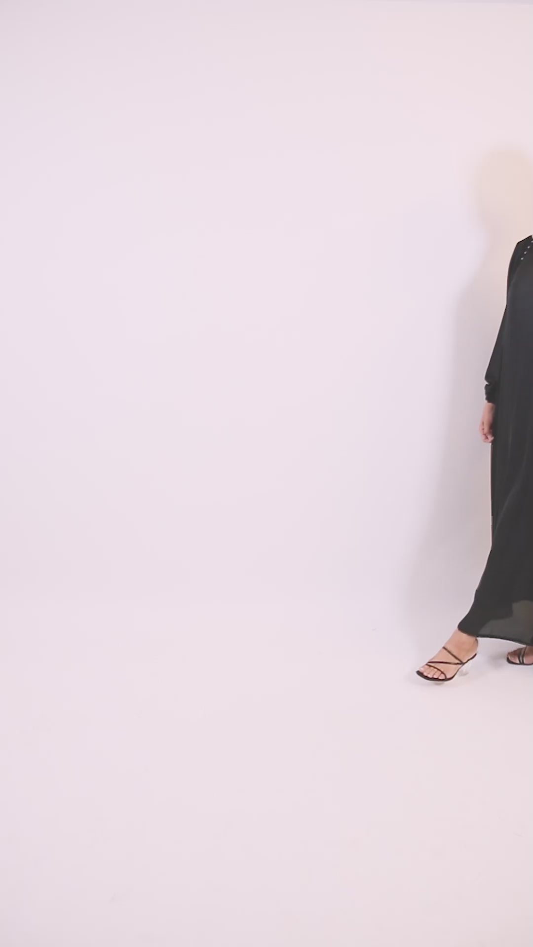 The 'Suwad' set is meticulously designed with a keen eye for detail. The throw-over abaya features faux pearl detailing on both openings, adding a touch of luxury and sophistication to your attire. The inner slip dress, in the same color as the abaya, ensures a harmonious and seamless look, allowing the pearls to take center stage.